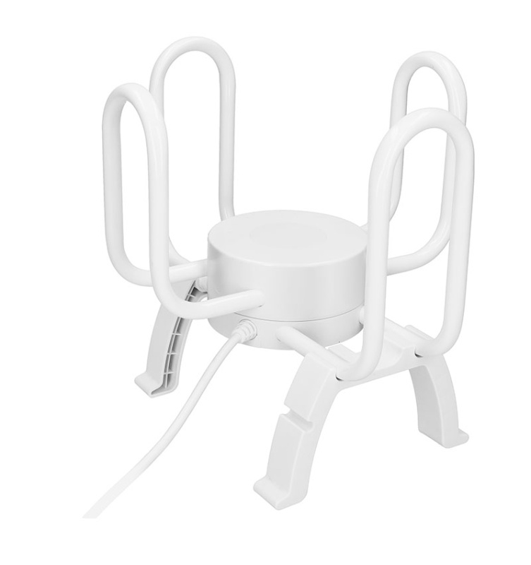 Sušička obuvi a rukavíc až pre 2 páry naraz. Ovláda sa pomocou vypínača so svetelným indikátorom. Príkon 42 W a napájanie 220-240 V/50 Hz. Rozmery: 26 cm (šírka) x 30 cm (výška) x 25,5 cm (hĺbka). Hmotnosť: približne 0,9 kg. Ideálne na účinné sušenie obuvi a rukavíc.