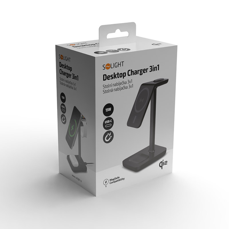 Stolová nabíjačka 3v1, Qi2, MagSafe kompatibilná