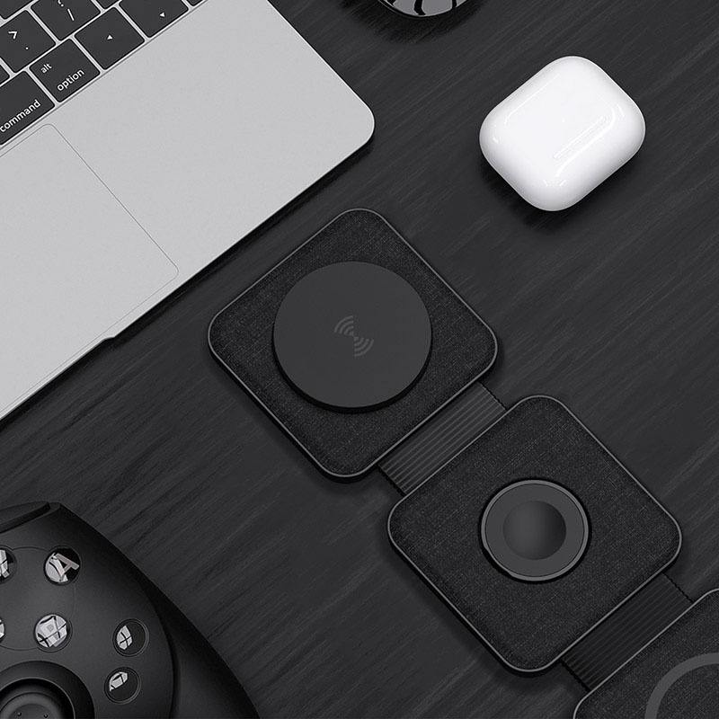 Druhá plocha s výkonom 3 W je výklopná a ideálna pre Apple Watch, zatiaľ čo tretia plocha slúži na nabíjanie bezdrôtových slúchadiel alebo ďalšieho telefónu.