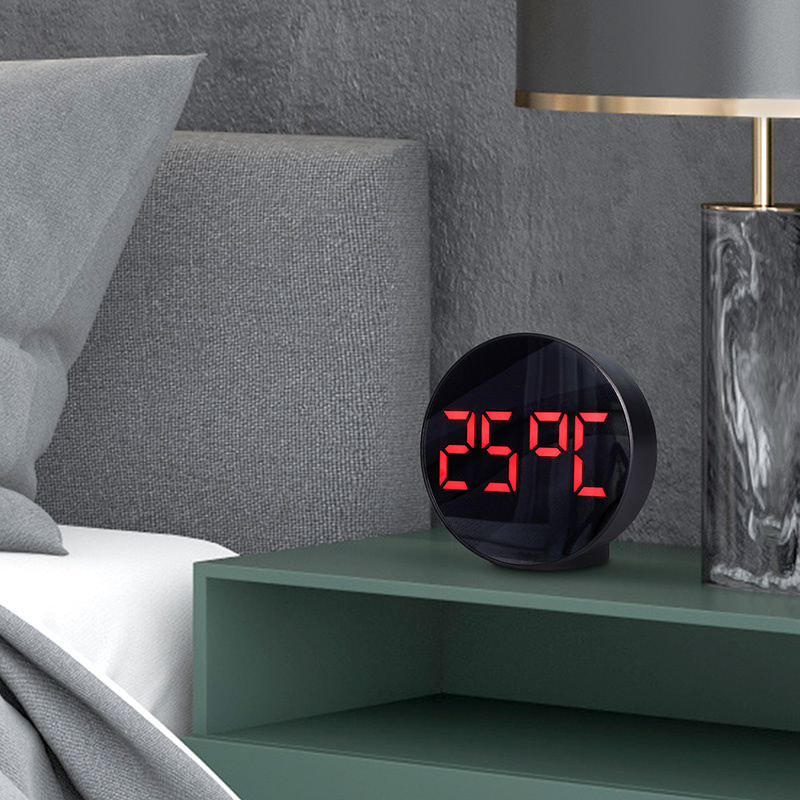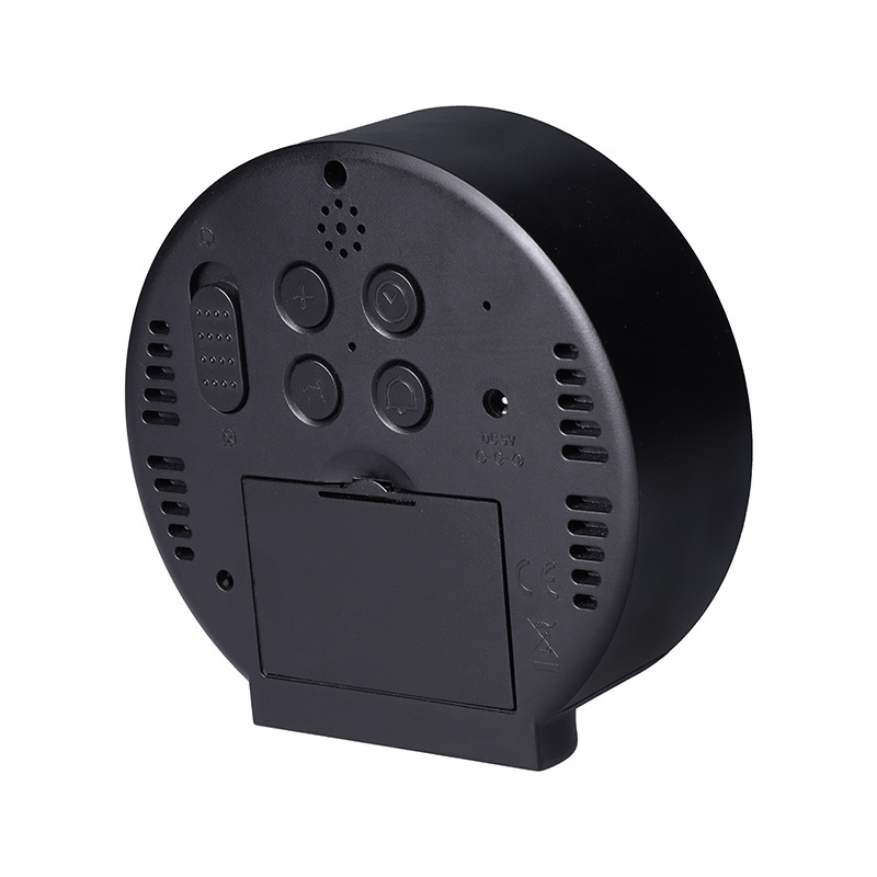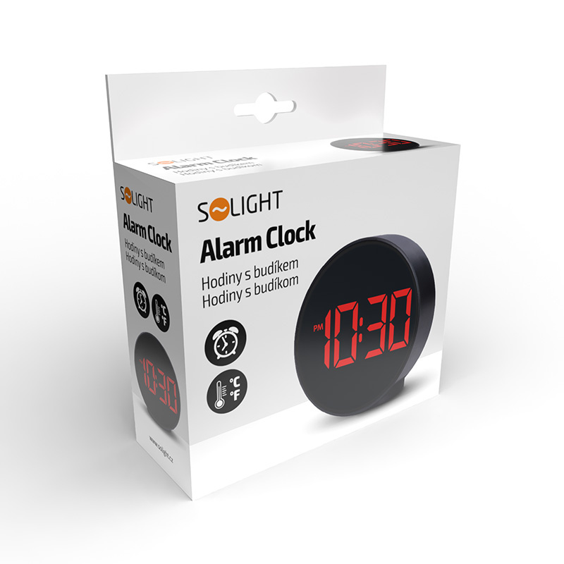 Digitálny budík s LED displejom a teplomerom. Tento moderný budík zobrazuje čas a teplotu na LED displeji s možnosťou prepínania medzi jednotkami °C/°F. Má tri úrovne jasu a nočný režim, ktorý automaticky znižuje jas počas nastaveného časového intervalu. Jednoduché nastavenie budíka s možnosťou jeho vypnutia zabezpečuje pohodlné používanie. Napája sa 3× AAA batériami alebo prostredníctvom DC 5V.