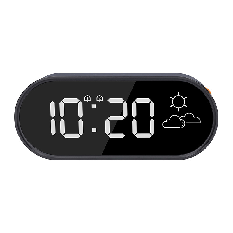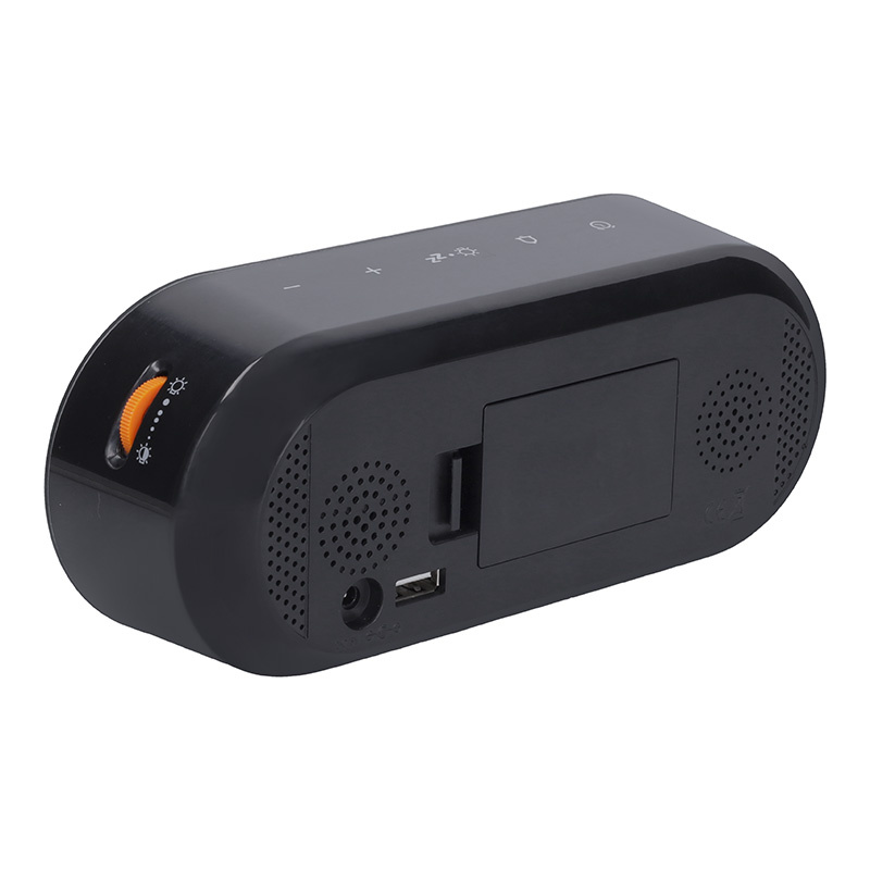 Hodiny s predpoveďou počasia s budíkom a nabíjaním cez USB. Tento moderný digitálny budík s funkciou predpovede počasia na základe zmien atmosférického tlaku kombinuje štýlový dizajn s dotykovým ovládaním. Displej umožňuje zobrazenie času alebo striedanie času a teploty, ktoré možno prepínať medzi °C/°F. Dvojitý budík s funkciou odloženia budenia zabezpečuje pohodlné budenie. Jas displeja možno nastaviť pomocou otočného voliča. Praktický port USB umožňuje nabíjanie iných zariadení.