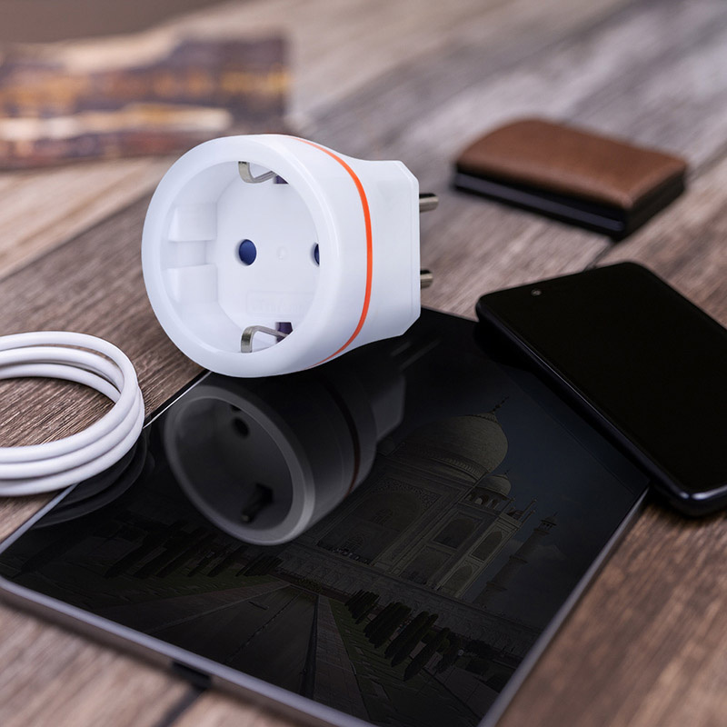 Adaptér umožňuje bezpečné použitie európskych zariadení v zásuvkách Indickej republiky a krajinách s podobným štandardom zásuviek. Pripojí uzemnené aj neuzemnené vidlice prívodných káblov.