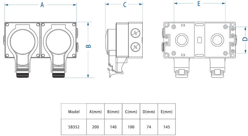 - skrutkovací vstup/výstup 2x M20x1,5 vrátane vodotesných skrutkovacích zátok, na prepojenie s ďalšími zásuvkami alebo inou elektroinštaláciou