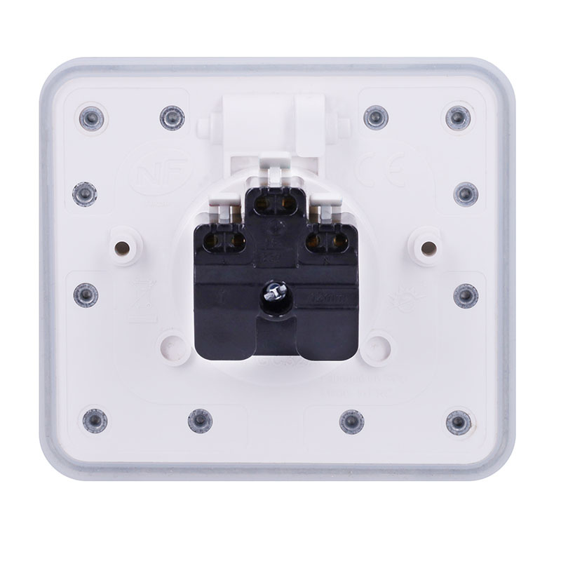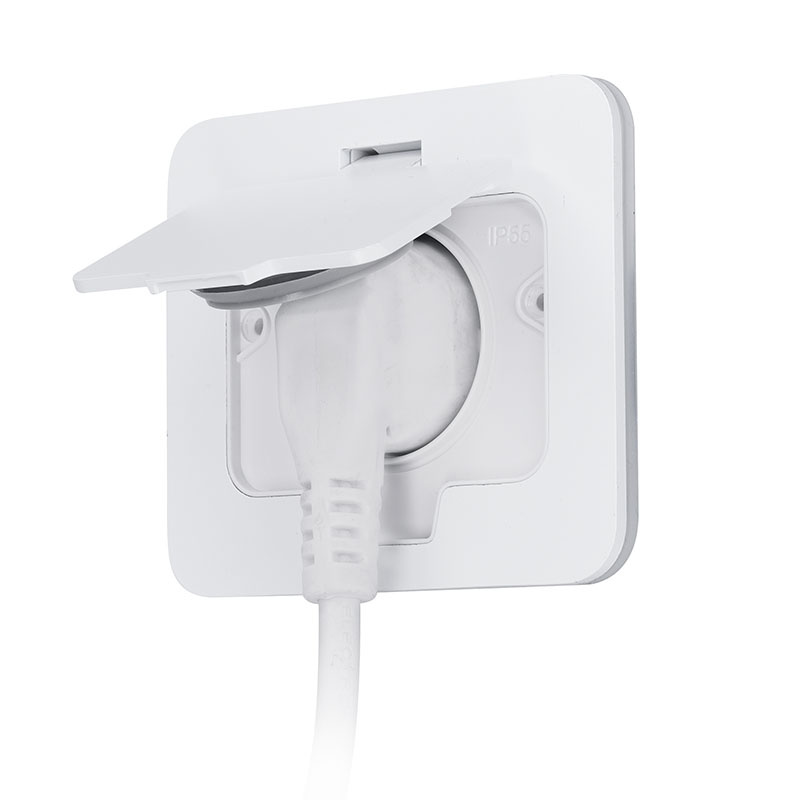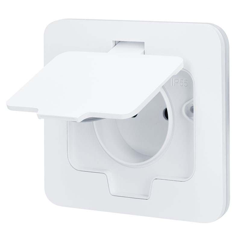 Zásuvka je opatrená dvojitým gumovým tesnením, ktoré bránia prenikaniu vody a prachu pod vrchný kryt aj pod viečko. Uzavreté puzdro chráni vnútornú konštrukciu pred prenikaním vlhkosti z okolia. Krytie IP55 umožňuje použitie aj vo vlhkom alebo prašnom prostredí, napríklad v terasách, záhradných altánkoch, okolo bazénov či dielňach, garážach alebo chodbách. Bez problémov znesie mokré čistenie, či už strojové alebo manuálne. Spoľahlivé fungovanie je zachované aj pri pravidelnom používaní.
