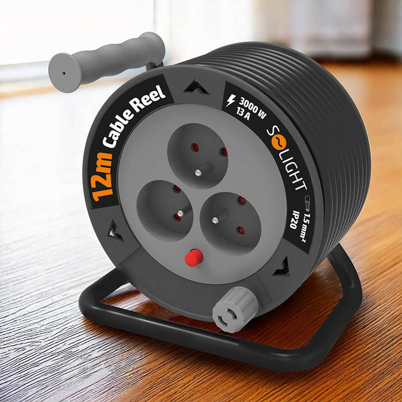 Klasický dizajn upravený do malých rozmerov je rovnako výkonný ako veľký bubon, napriek tomu oveľa skladnejší a ľahšie prenositeľný. Tri zásuvky s detskými poistkami sú chránené tepelnou poistkou, ktorá preruší napájanie v prípade preťaženia alebo pri plnej záťaži bez úplného odvinutia kábla.