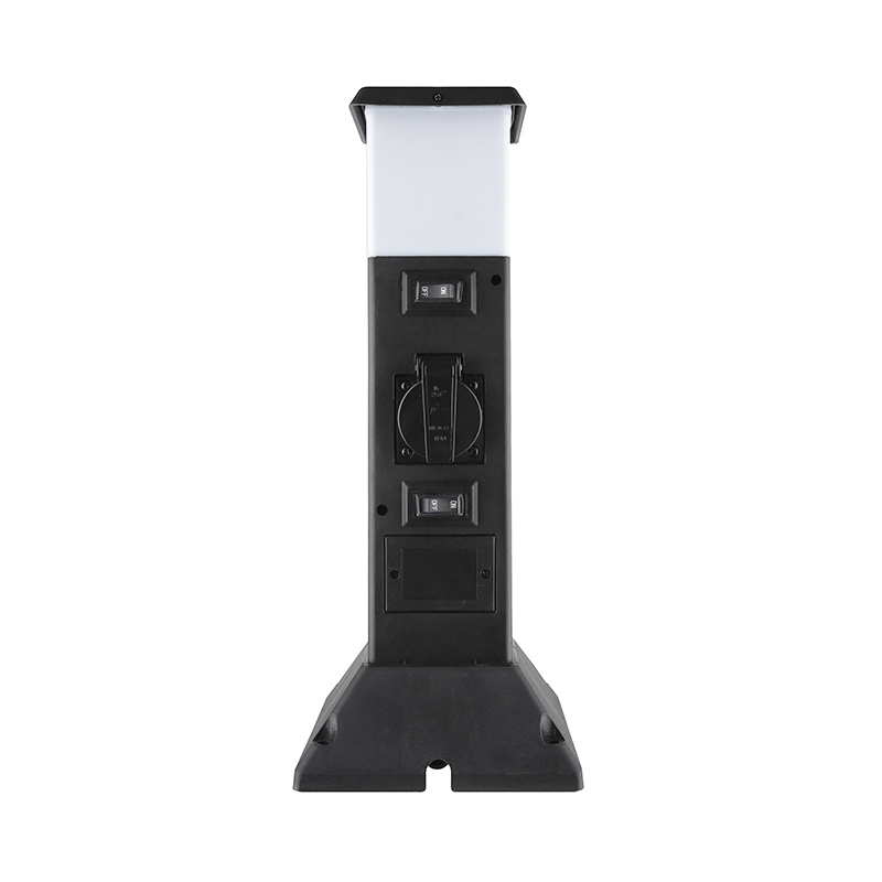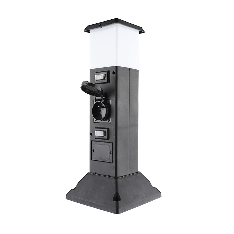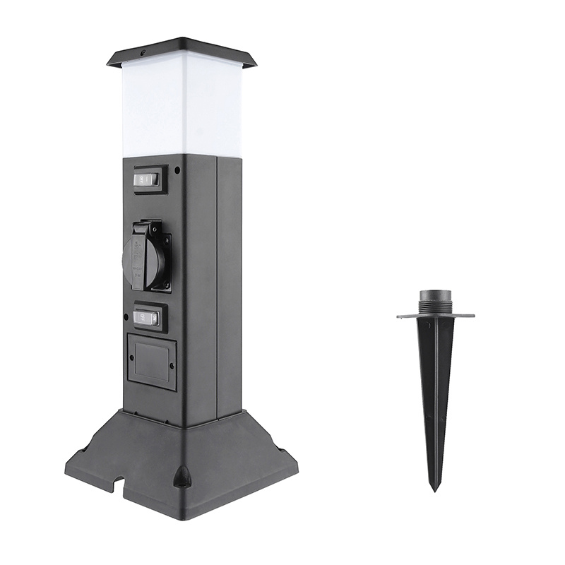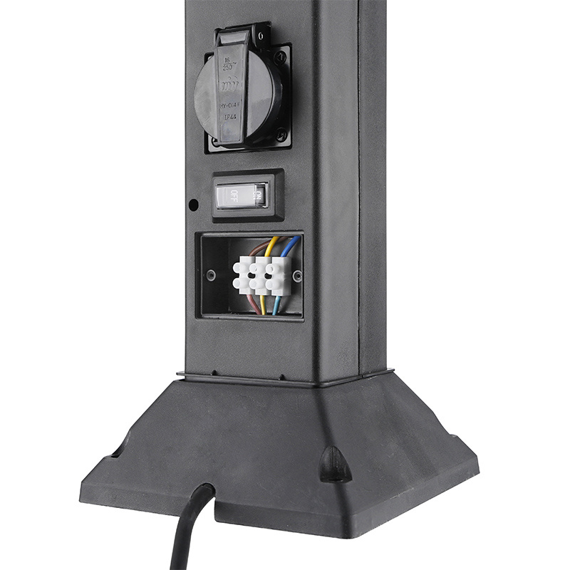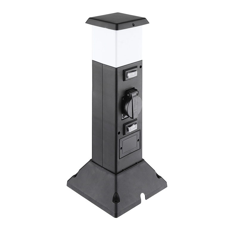 Záhradný stĺpik IP44 s LED osvetlením, plast, 2 zásuvky, hranol, čierny
