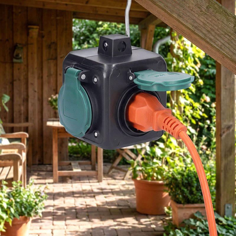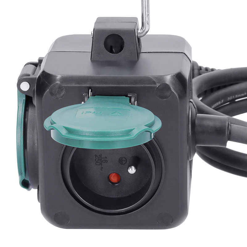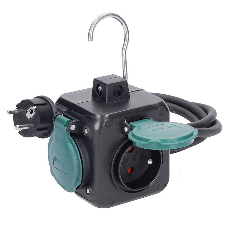 - 3 zásuvky 10A 230V~, detské poistky a IP44 krytky proti prachu a vlhkosti