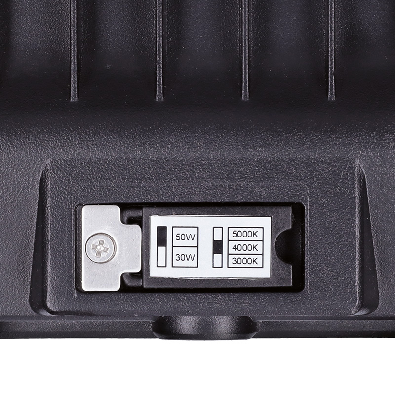 Tento LED reflektor radu TOP je ideálnou voľbou pre osvetlenie väčších plôch, dielní, stavenísk či komerčných priestorov. Ponúka prepínateľný výkon 50W a 30W, čo znamená svetelný tok až 6500 lm alebo úspornejší 3900 lm. Užívateľ si môže zároveň zvoliť teplotu svetla podľa potreby: 3000K (teplá), 4000K (neutrálna) alebo 5000K (studená biela), čím sa dá ľahko vytvoriť ideálna svetelná atmosféra pre akékoľvek prostredie.
