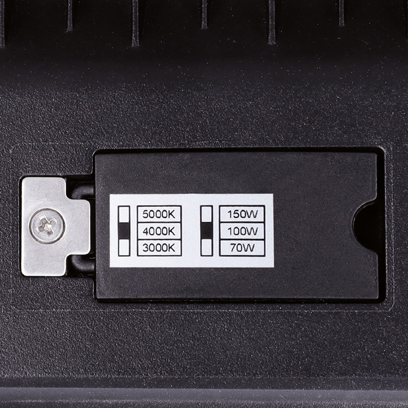 Najvýkonnejší model z radu TOP reflektorov ponúka masívny svetelný výkon až 21 000 lm pri plných 150W, čo ho robí ideálnym pre nasvietenie veľkých areálov, športovísk alebo priemyselných zón. Vďaka prepínateľnému výkonu je možné reflektor nastaviť aj na 110W (15 400 lm) alebo 70W (9 800 lm), čím je možné optimalizovať spotrebu elektrickej energie. Možnosť zmeny teploty svetla v rozsahu 3000K–5000K pridáva na univerzálnosti zariadenia.