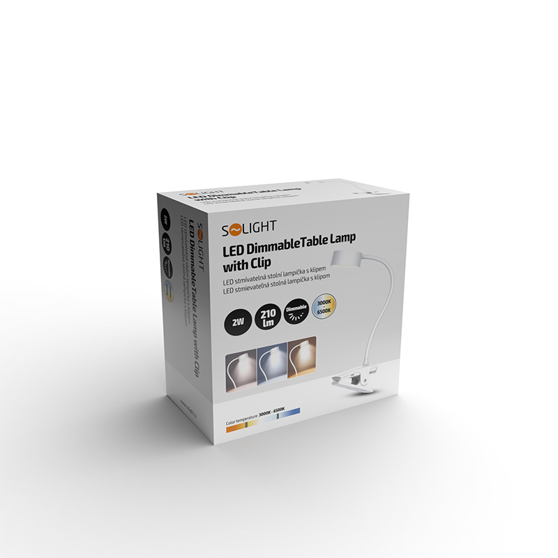 LED stolná nabíjacia lampička, 2W, 210lm, 3CCT, biela, clip