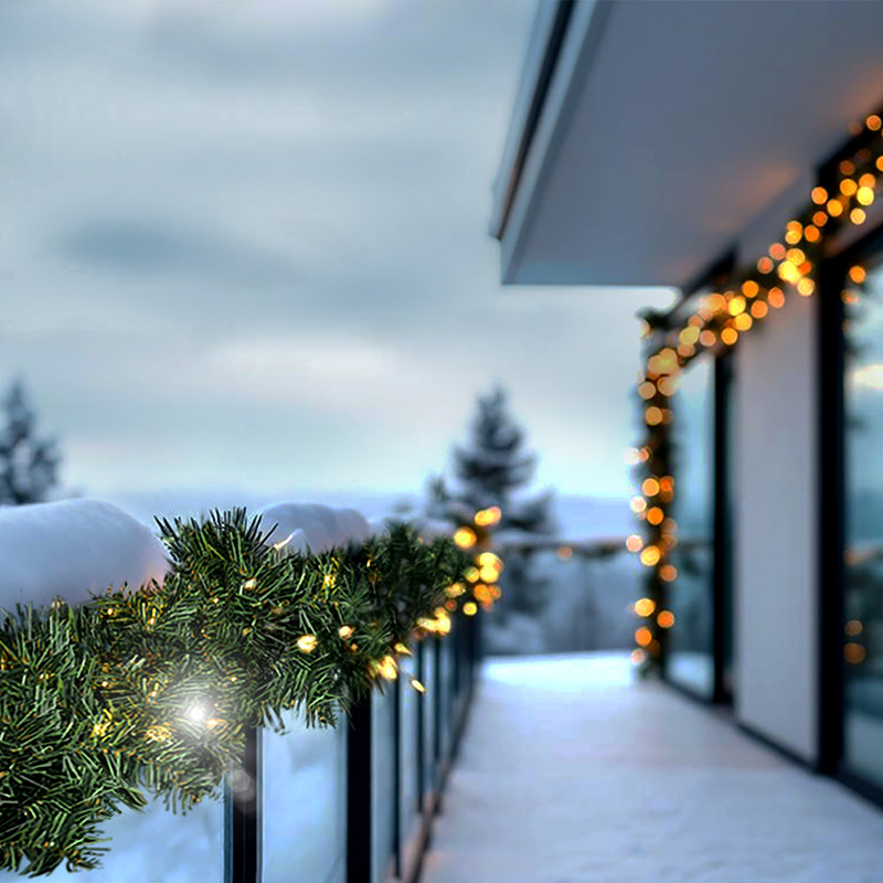 Vytvorte si očarujúcu vianočnú atmosféru s LED girlandou s umelým ihličím a teplým bielym osvetlením. Táto elegantná dekorácia je ideálna na zdobenie interiéru i vonkajších priestorov, či už ju umiestnite na zábradlie, dvere, krbovú rímsu alebo plot.