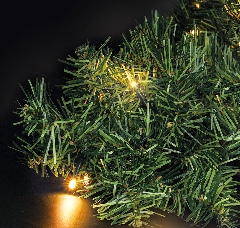 LED vianočná girlanda s ihličím, 5m, 80x LED, časovač, 3xAA, IP44